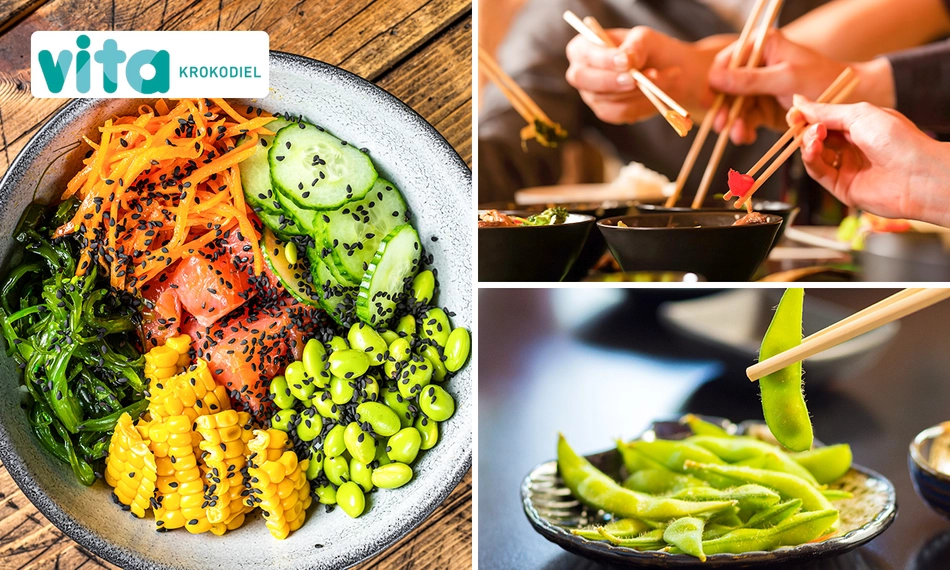 Geniet van een overheerlijke large pokébowl naar keuze bij Vita Krokodiel: inclusief Asian bites, een dessert van de week en eventueel inclusief een lekkere cocktail