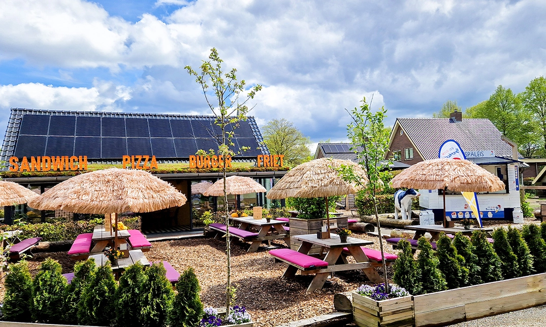 Heerlijke pizza's, burgers, loaded fries, salades en sandwiches staan op het menu en je proeft hier de lekkerste ijsjes in het IJspaleis. Het terras, de speeltuin en de naastgelegen boomgaard maken deze locatie een geliefde plek voor jong en oud. Kom langs en proef de Veluwse gastvrijheid en gezelligheid!